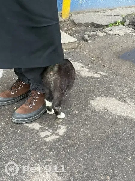 Выбежал к нам пулей, как только увидел (время 5 утра, людей ещё нет на улицах). Очень громко мяукает. Недавно кастрирован (в вет клинике сказали, около 3 недель назад), ещё не смылась зелёнка. Черный носик, мордочка частично белая и лапки, сам темно-серого (даже почти черного) цвета. Глаза янтарные. Переворачивается на спинку, когда его гладят. Мяукал до тех пор, пока не уснул (очень ищет своих хозяев).
