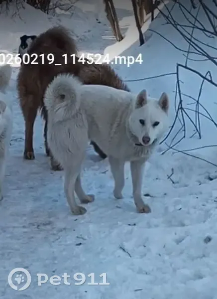 Лайка, почти белый, кобель, в ошейнике, очень контактный. Три дня уже обитает на углу 2Дачная\2Кольцевая