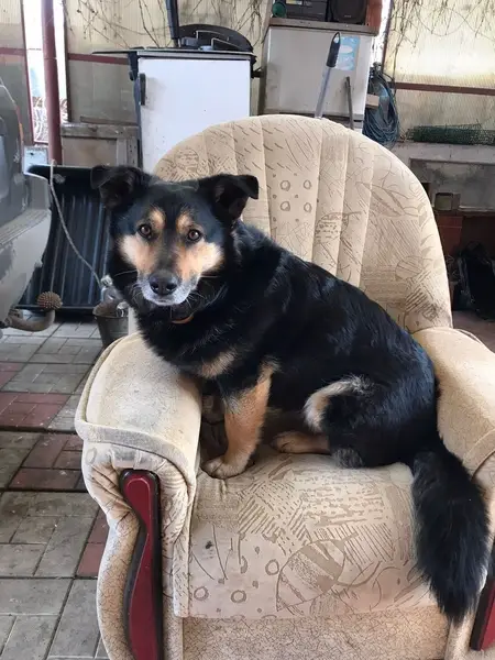 Рост как у таксы,дворняга.Сука.Идет течка.