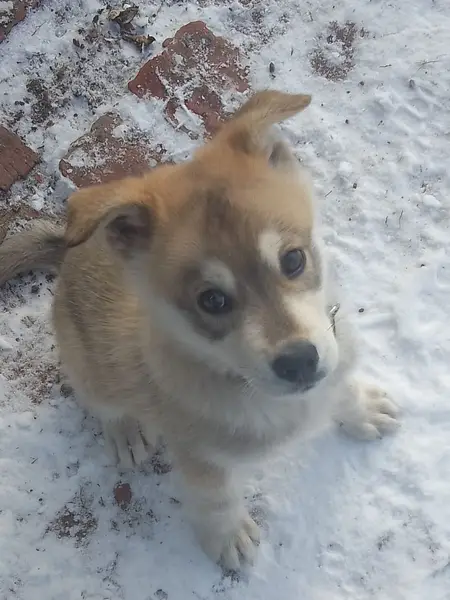 Девочка,примерно 2 месяца. Любопытная,милая,любит играть с другими собаками. В еде неприхотлива.