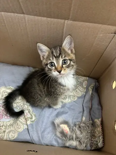Потерялся котёнок, мальчик. Возраст примерно полтора месяца. Коричневый с полосками (на фото видно). Убежал 2 августа 2023 года, рано утром. Поиски начали в 6:00 утра, по улице Артёма Избышева, г.Омск, Привокзальный микрорайон. Так как маленький далеко не мог уйти, скорее всего подобрали прохожие живущие рядом. Просьба вернуть если вы его забрали 🙏🏻 за вознаграждение.