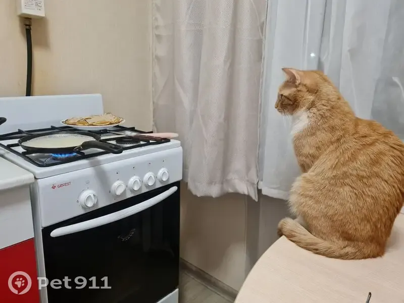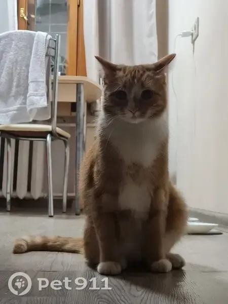 Потерялся кот, сегодня вечером выпрыгнул с окна. Искала около домов приблизительно от дома, думаю далеко убежать не мог - на улице холодно Рыженький, белые лапки, воротничок и область мордочки, розовый нос слегла горбатый в профиль, и подушечки на лапках, глаза янтарного цвета, отвлекается на кис-кис, мяукает как котенок