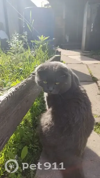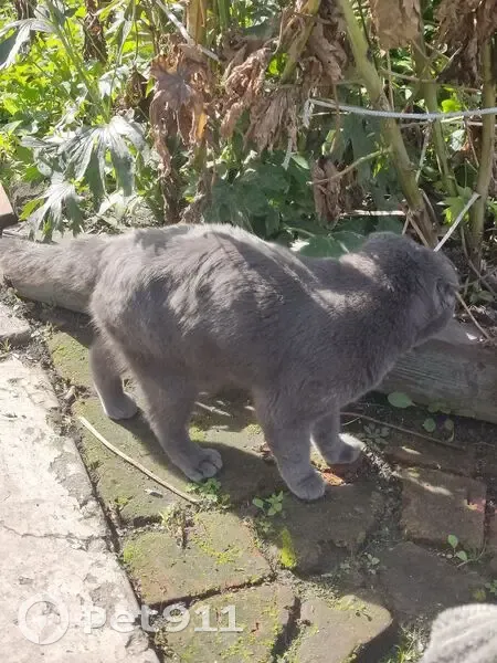 Вислоухий британец серого окраса, со средней шерстью, пропал при неизвестных обстоятельствах, не стелиризован, имеется травма нижнего позвоночного отдела и наличие риска сердечной недостаточности, не рекомендуется проведение операций под наркозом