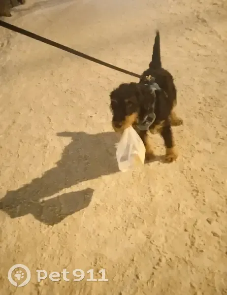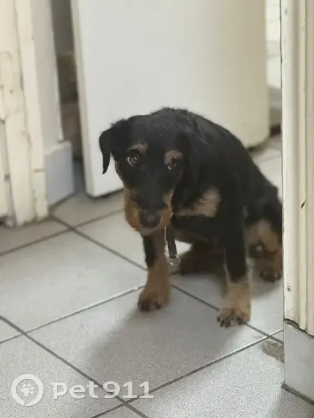 Собака породы ягдтерьер, дрессированный, знает команды. Окрас черно- подпалый, жесткошерстный. Не рабочий, не охотник. Но ушел по запаховому следу в лес и не вернулся. К людям нейтрален, не агрессивен.