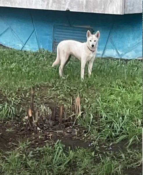 21.11.18 утром с ул. Семиреченская 126. г. Омск (старый Кировск) Убежал белый метис хаски/лайка. Глаза карие. Небольшой серый окрас на спине. Прокопал под вольер. Одет простой и блошиный ошейник. Хвост сломан - просто висит. К охране не пригоден, требует постоянных беговых нагрузок (будет шкодить). Одет простой и блошиный ошейник. Хвост сломан - просто висит. К охране не пригоден, требует постоянных беговых нагрузок (будет шкодить).