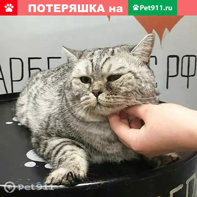 Потерянные животные Омск, фото: Пропала крупная серая кошка Тихон в Омске.