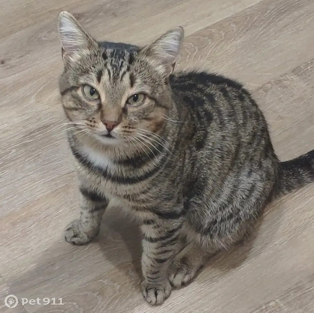 Потерянные животные Омск, фото: Пропала кошка: серая, с полосками, белый галстучек. Бульвар Архитекторов, Омск.