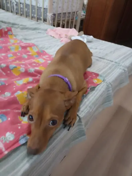 На территории 5ой больницы сегодня утром найдена собака. Такса, мальчик, с ошейником. Собака очень напугана, от воды и еды отказывается. Бегает и ищет хозяина. На данный момент пес находится на станции водоканала на территории 5ой больницы под присмотром людей.