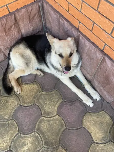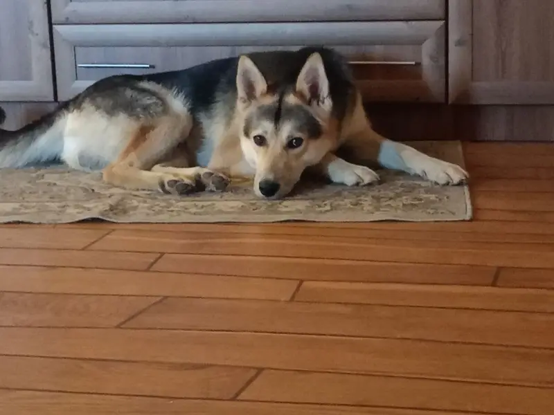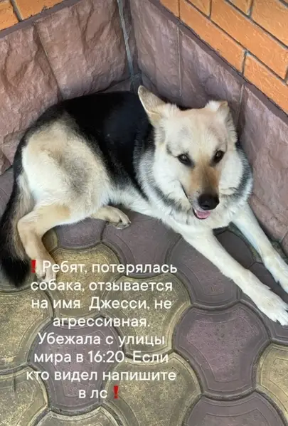 С ошейником. Голубые глаза. Пришла со строны моста и увязалась за мной