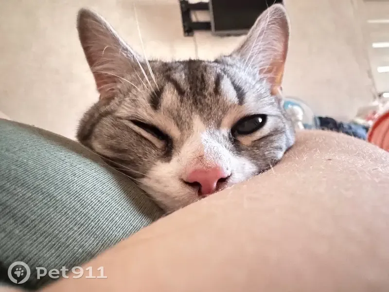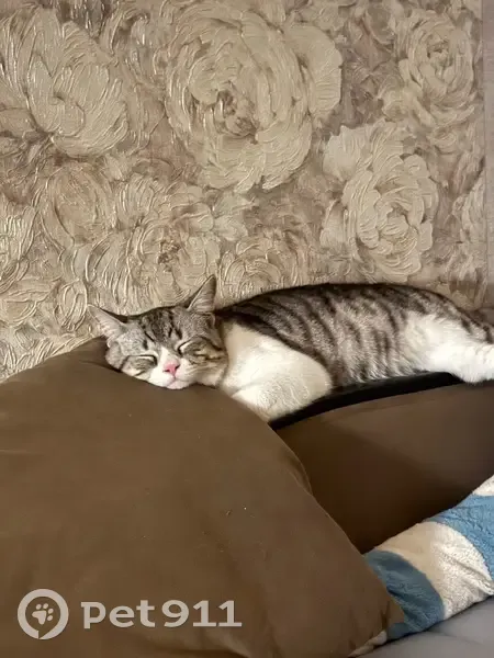 Окрас вискас, серо-белый, полосатый. Носик розовый. Глаза желто-карие. Пушистый хвост как у енота . Вечером гулял на балконе, и упал с 3 этажа. Обычно гулял под присмотром. Но к сожалению, меня не было дома и муж забыл закрыть балконную дверь. И наш пушистый друг остался на балконе, тк в квартире еще жарко