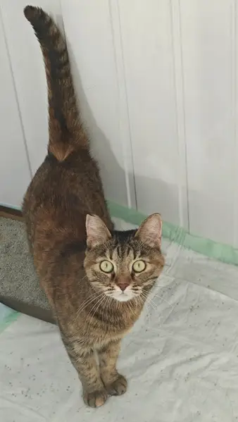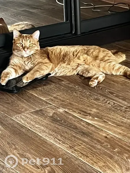 Ярко рыжий. Заломан хвост пополам. Пушистый