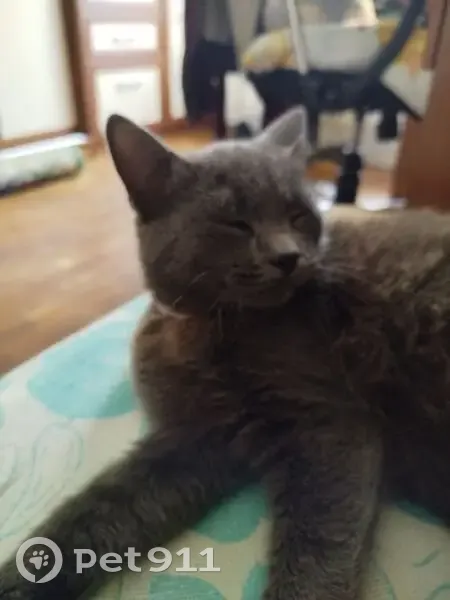 В подъезд пришла молодая кошка. Цвет серый серебристый. На шее желто-оранжевый ошейник. Кошка домашняя, приучена к туалету, знает где чесать когти. Ласковая.