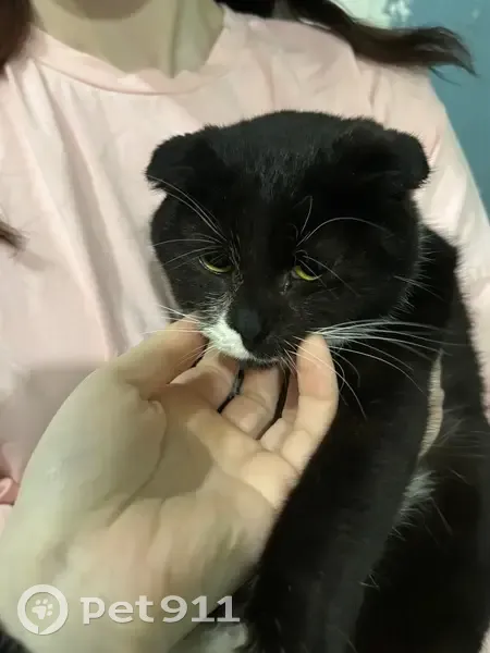 Черно-белое вислоухое милейшее ласковое создание прибилось к нам 15.02.2026 утром , территориально улица элеваторная жд район (рядом с женским монастырем) замерзла и была очень голодная. Котейка явно домашняя, с ярко-желтым ошейником. Чистая и ухоженная. Уверена, что родители очень переживают и скучают по ней. Котенька тоже переживает, хозяева, найдитесь пожалуйста