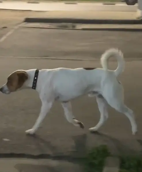 Белый окрас, уши коричневые, на морде коричневые пятна вокруг глаз, широкая грудь, знает команды, откликается на кличку Герда. Девочка, рассел - терьер, высокая, длинные лапы, 1 год
