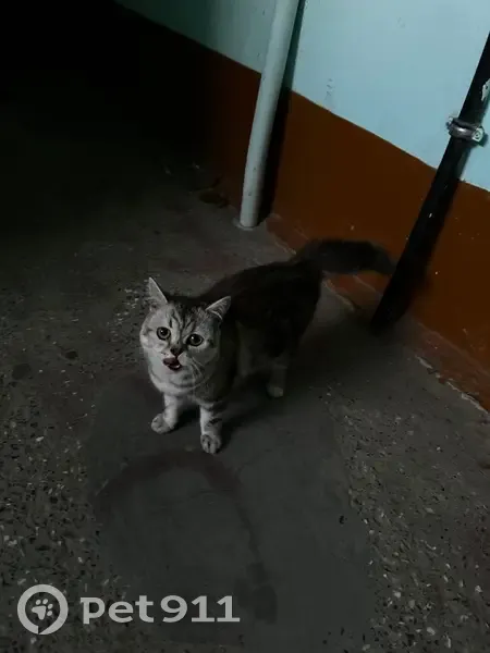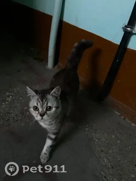 Появилась в подъезде, не знаю точно откуда. Окраска серая, с темно-серыми полосами, шерсть пушистая, очень мягкая. Глаза желтые. Мордочка приплюснутая. На вид не старше года. Очень контактная, просится в квартиру. Выглядит очень ухоженно