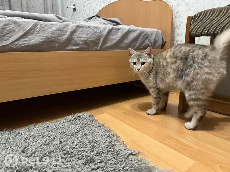 крупная кошка, голубого окраса, с рыжими пятнышками на спине, глаза зеленые, розовый носик. Хотела попасть в подъезд, жительница сказала, что она не с этого дома и впервые видит ее. Может быть заблудилась. Подошла к моей машине тряслась и поднимала лапки