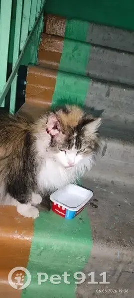 Найдена кошка . Я её нашла в подъезде и принесла ветеринару. Кровит ушко,это папиллома, не заразно, врач сказал прижигается стандартно, но в другой клинике после праздников. Сказал, что кошечка чистенькая и домашняя видимо. Кошке в подъезде обустроила коробку лежанку и корм с водой. У меня кот , некастрированный , будет гонять ее. Очень жалко животное, ищу ей дом.