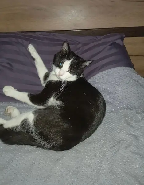 Котенок (девочка), окрас черно-белый, гладкошерстная, возраст примерно 3 - 4 мес. На шее был ошейник красного цвета с рисунком. Найдена около Нефте-газо-разведочного Колледжа.