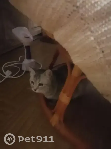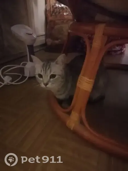 Серая кошечка, порода скорее всего британка. Чистая, может быть убежала. Характер независимый, негативно реагирует на наших котов, рычит. Пока отказывается от еды. Окрас серый с характерными полосками. На улице подошла спокойно. Но в квартире мечется, ищет дом.