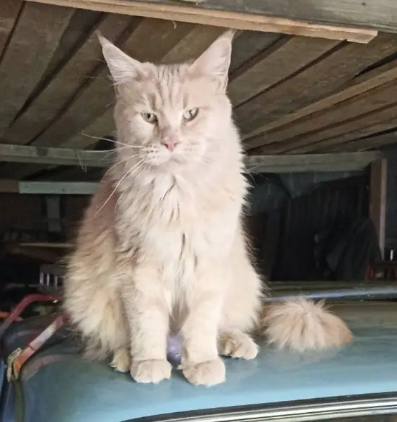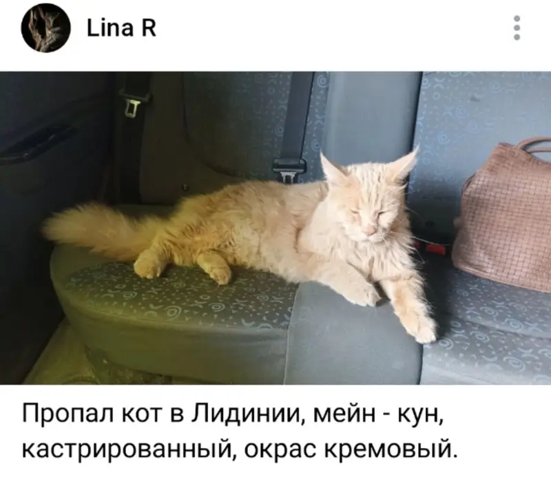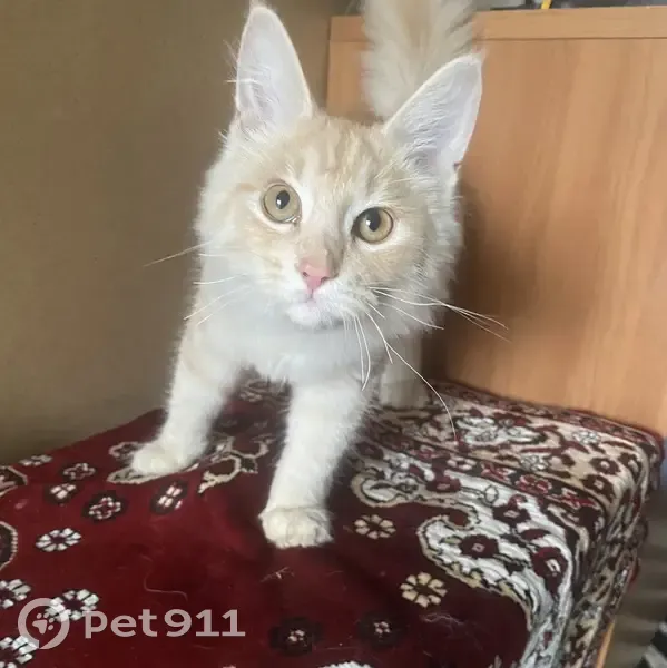 Всем здравствуйте! Ищу хозяина с доказательствами , что его животное . Найдена кошка ( похожа на породу Мей-Кун ) В р-не Комсомольской/1мая Видно, что потеряшка домашняя . Знает лоток .