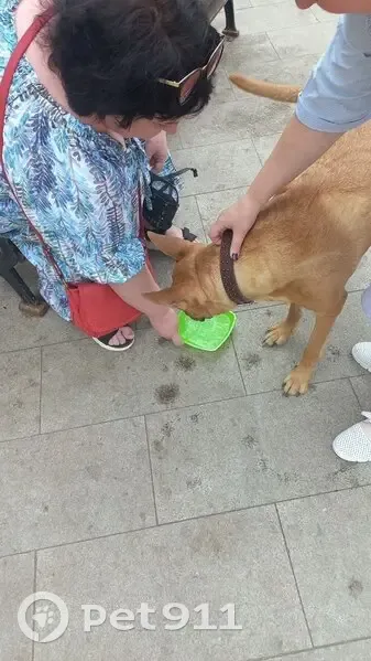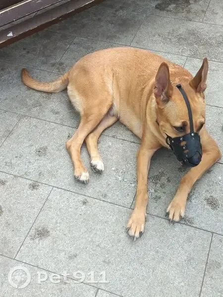 Собака рыжего окраса, в наморднике и ошейнике Найдена на улице советской 9 Ужасно сильно хотела пить Прохожие помогли ей Просьба хозяев откликнуться! По номеру +7 (932) 253-54-66