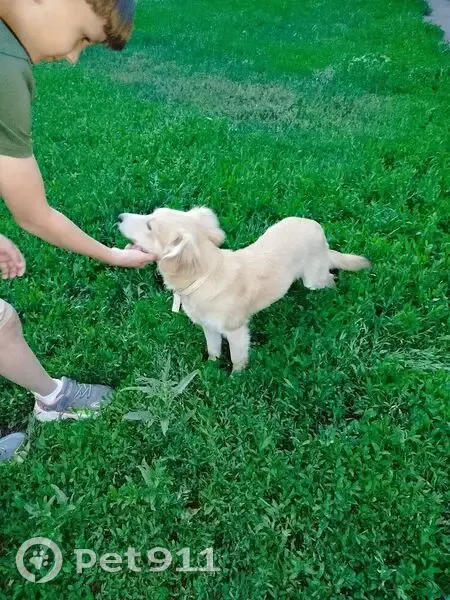 Найдена собака бежевая. На шее ошейник замшевый бежевый. Собака небольшого размера, возраст примерно 1 год, порода смешанная, мальчик. Спокойная, контактная, игривая. Район улицы Салмышская 14, город Оренбург.