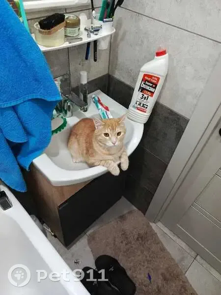 Рыжий, кастрированный, Кличка "Бандит" Очень ласковый, при мурлыканье может хрюкать Особые приметы:на затылке есть "кожный рог", новообразование Верните,пожалуйста, за вознаграждение. Он нам очень дорог