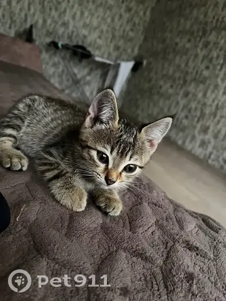 окрас серого тигра,выпала с окна(предположительно) в районе Туркестанского 37, на хвостике есть залом, как будто сломан на кончике, очень ласковая, любит людей