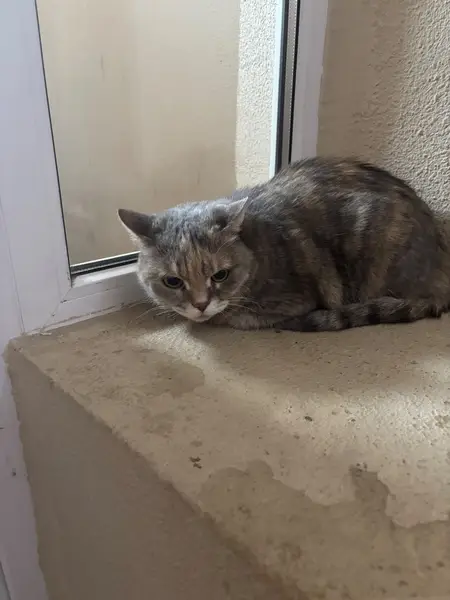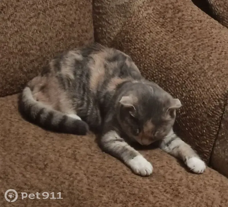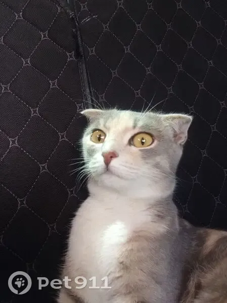 Большая часть тела серая. Есть бежевые пятна, а лапы, живот и мордочка белые. Вислоухая, жёлтые глаза и серый ошейник. Не сильно взрослая но и не маленькая. Вышла ночью на улицу и не пришла