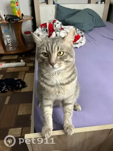 окрас: темно-серый, белое брюшко, желто-зеленые глаза, очень пугливый, ушел гулять утром 09.04.25 и больше не появлялся (что очень не похоже на него) отзывается на свое имя, ест только сухой корм, упитанного телосложения