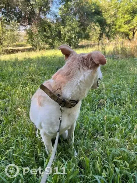 Здравствуйте, пропала собака по адресу ул. Салмышская д. 9/3, гуляли вечером, в 20:41 вышли с ним. Обошли все вокруг дома, нигде не нашли, на стоянке по адресу Просторная 9 охранник сказал, что видели его, пытались приманить, но не получилось. У них на парковке есть дыра в заборе, сказали, что ушел в ту сторону. Дальше там идет поле и загородное шоссе. В какую сторону он мог уйти мы не знаем, потому что сами никогда там с ним не гуляли. Зовут Бим, 3 года, не породистый, окрас белый, на спине рыжеватый цвет. В холке 40-50 сантиметров, вес 20-25кг. Боится других животных и людей, но может подойти, если есть настроение поиграть. На нем надет такой же ошейник, как на фото.