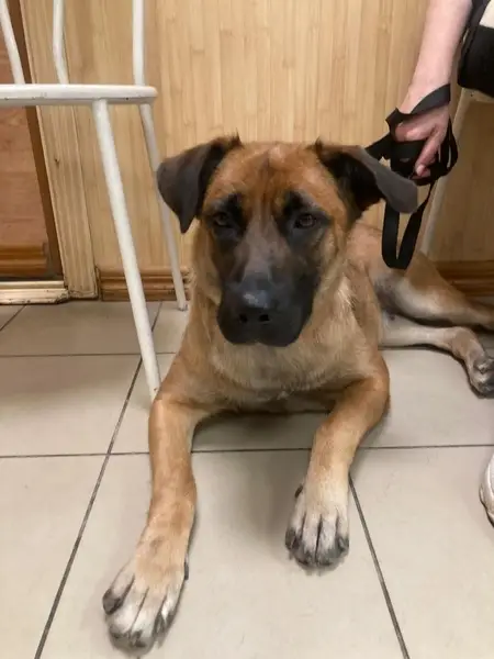 Кабель, порода Кангал. К людям и детям добрый. Окрас серый мордочка чёрная, уши не купированные!
