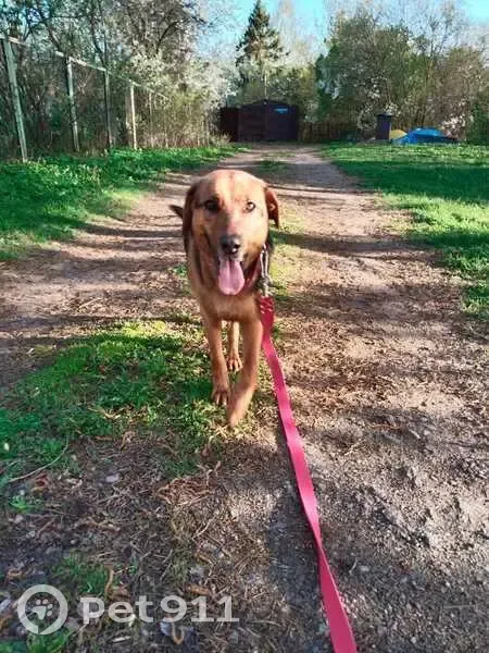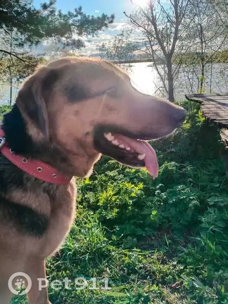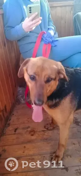 Присутствует чепрачный окрас, как у немецкой овчарки, но морда вытянута, уши повисшие, глаза карие и очень добрые. Собака лежала на проезжей части рядом с остановкой. Ранее ее не видели в этих краях .