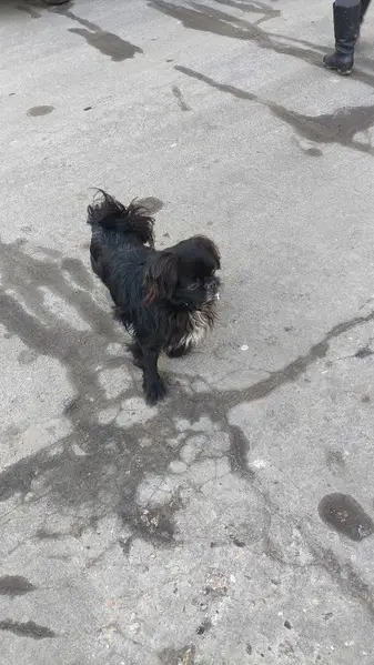 Кобель 2 года, окрас черно-белый, около 20 см в холке, кличка Кузя, очень игривый и ласковый, неправильный прикус.