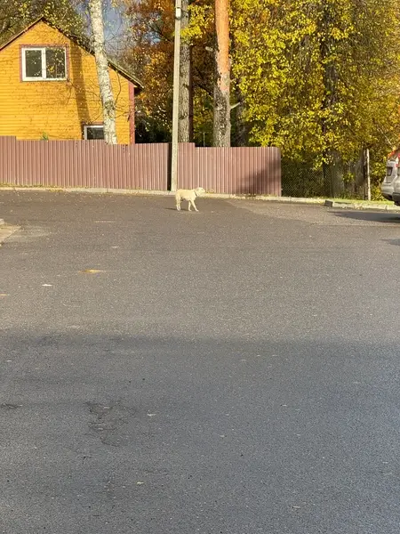 Белая, худая, из далека похожа на борзую, но в близи - по морде и ушам(пушистые с длинной шерстью), похожа на разновидность лайки, Точно читопородная, но какая конкретно порода незнаю. Не подходит, испуганная, бегала около переезда, потом исчезла, забегает в ближайшие дворы и в дыры, между забора и и зданиями, не догнать. Попытка поймать поводком-гавкнула и приспустила как спринтер. Первое фото с калиткой, она туда скреблась, но убежала, я-стучала, не открыли дверь в доме, но калитку я приоткрыла, вдруг это её дом. Хозяин: рядом с вами железная дорога и активно ездят автомашины... Берегите животное ваше, самовыгул не лучший вариант, а если убежала, калитку не закрывайте пожалуйста, она скребется в неё.