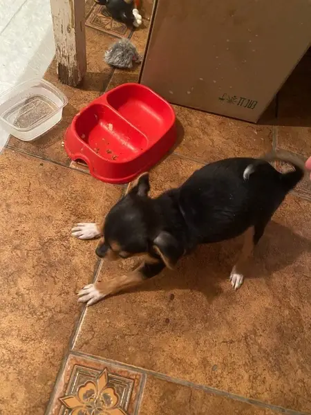 Нашли возле магазина Меркурий, сидел на дороге с ошейником и порванным поводком. Очень ласковый, умный, обученный и судя по всему домашний. Окрас черный с коричневыми пятнами.