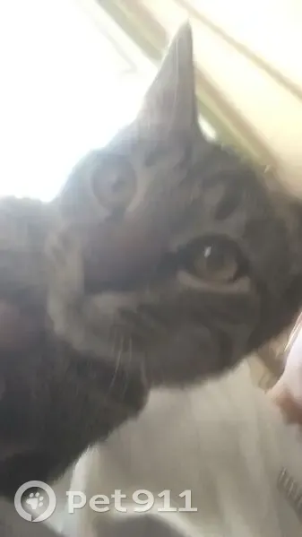 Котик очень добрый, любит лощится и бегать,обычно не пугливый,на кличку не откликается, только на кс кс,довольно увесистый кот,около 6-7 месяцев,не кострирован, полосатый