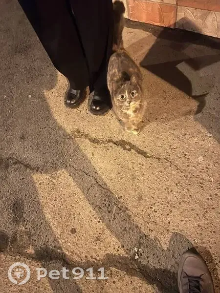 Была найдена кошка, очень ласковая, ухоженная. Кормим всем домом уже третий день, с 27.03 она сидит у подъезда на лавочке.