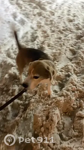 Найдена собака породы Бигль (кобель). В шлейке оранжевого цвета с поводком. Между магазинами Магнит и Спар на проспекте Строителей 40. Вечером 07.01.25