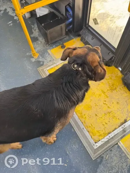 Ошейник видно на фото, хороший добрый пёс. Зашел у ПГУ в 130 автобус, ходил искал хозяина, когда не нашел встал у двери на выход. Студенты зашедшие с ним сказали что он до этого вышел из какой то маршрутки один, номер маршрутки не уточнили. К сожалению, где сейчас пёс не знаю, со мной ему доехать не разрешил кондуктор, но вышел он на следующей остановке после ПГУ - Куйбышева.