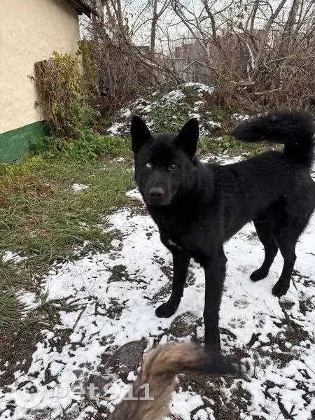 Найден пес. Черного цвета. С разными глазами. Появился на улице Ангарская район ГПЗ 4 ноября. Бегает с местными собаками. К людям не идет.