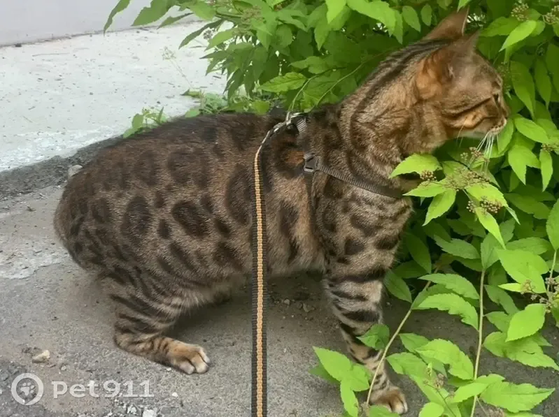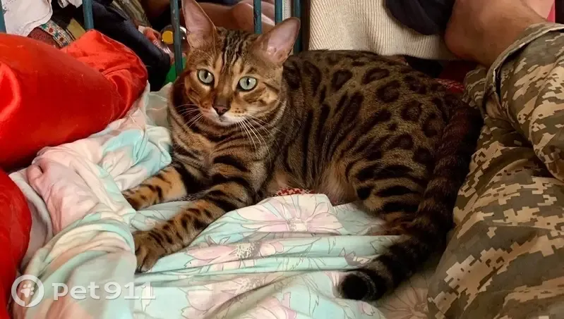 Порода Бенгал Окрас леопардовый На шее кулон железный с сердечком Боязливый На Кс-Кс не откликается только на кличку Откликается на шуршащий пакетик влажного корма