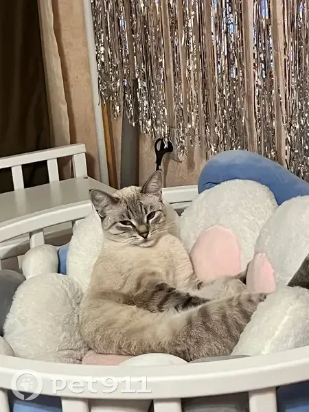 Моника выбежала из дома, когда выходили на прогулку с ребенком. К сожалению заметили её пропажу уже только вечером. Мы прошлись по подъезду, вокруг дома, но нашу девочку не нашли. Моника не откликается если её звать, довольно пугливая кошка. У неё большие голубые глаза.