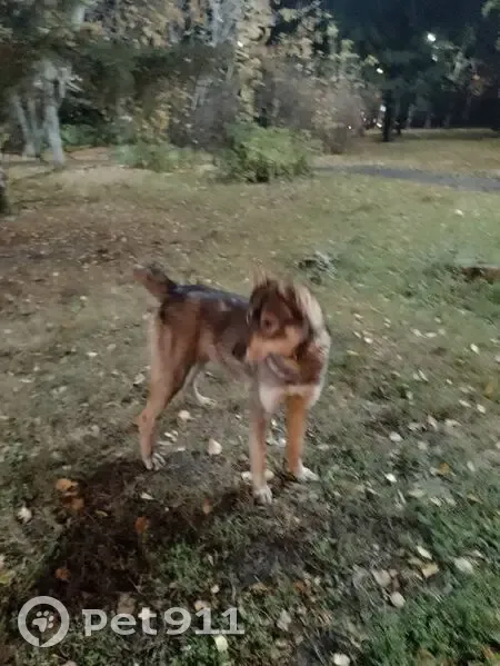 Молодая собака без ошейника, Типаж Хаски, гетерохромия( голубой и карий цвет глаз), молодая, бегала в паре с другой собакой - молодым кобелем желто-серого цвета