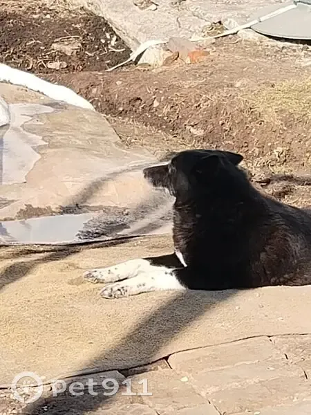 Чёрная с белыми передними лапками и белое пятно на груди, появилась вечером и лаяла всю ночь, не уходит и дом свой не ищет. Такое ощущение, что её кто-то привёз .
