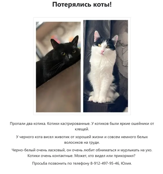 Доброго времени суток! Две недели назад мы подобрали молодого черного кота в районе Закамска, на улице Маршала Рыбалко. Котик ухоженный, игривый, с другими кошками чувствует себя хорошо. Ищем старых или новых хозяев. Кота обработали от паразитов и кастрировали. Для связи звоните по номеру 89523342541, Наталья.