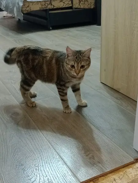 Бегала во дворе дома. Контактная . Сейчас находится в комнате вахтёра.