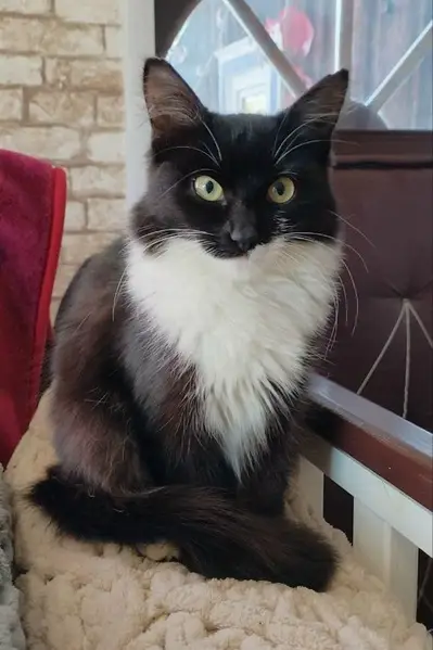 Ласковый кот. Весь грязный, кушает хорошо. Не знаем приучен ли к лотку. Вроде кастрированный