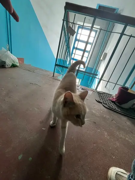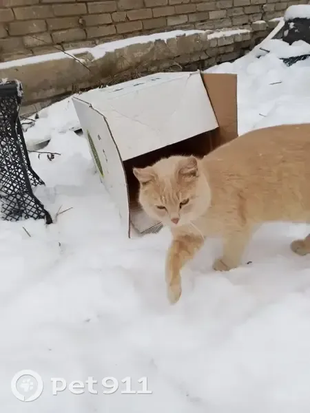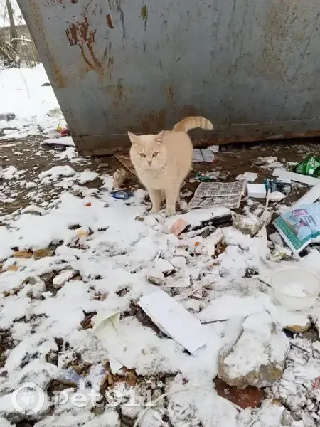 Кошечка видно что была домашняя. Скорее всего её оставили люди из расселенного дома. Кошечка или котик спокойный и не пугливый. Около месяца уже на улице живет у мусорного бака и плачет