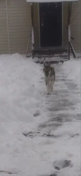 Мальчик, не высокого роста, судя по зубам не взрослый. Окрас серый с белыми лапками и белым животиком. Был найден в ночь с 2 на 3 января. В районе Паркового, не далеко от остановки Пожарского. Был обессилен, растерян, в состоянии аффекта. На псе был зеленый ошейник, мальчик воспитанный и спокойный.